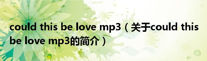 大家好,could this be love mp3,關于could this be love mp3的簡介很多人還不知道,現在讓我們一起來看看吧!