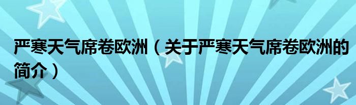 本文關于嚴寒天氣席卷歐洲的簡介就講解完畢,希望對大家有所幫助。
