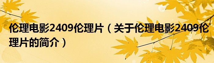 本文關(guān)于倫理電影2409倫理片的簡介就講解完畢,希望對大家有所幫助。