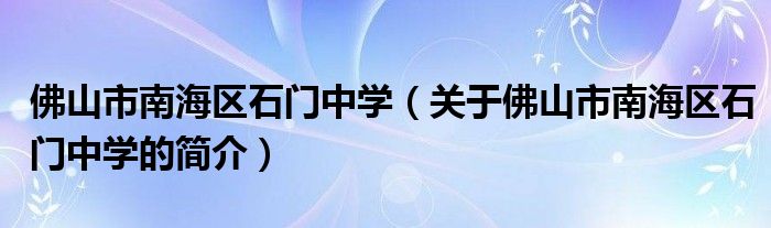 本文關于佛山市南海區石門中學的簡介就講解完畢,希望對大家有所幫助。