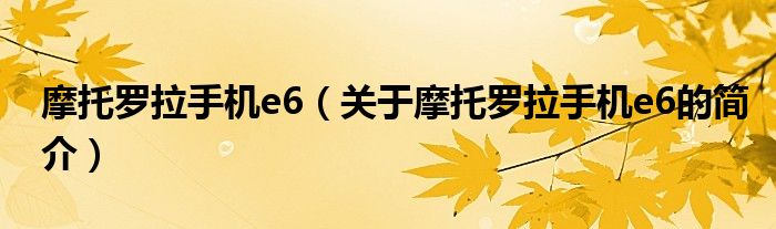 本文關于摩托羅拉手機e6的簡介就講解完畢,希望對大家有所幫助。