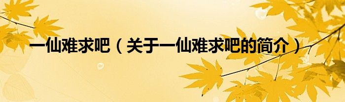 本文關(guān)于一仙難求吧的簡介就講解完畢,希望對大家有所幫助。