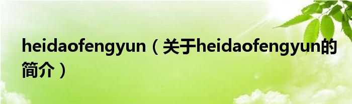 本文關于heidaofengyun的簡介就講解完畢,希望對大家有所幫助。