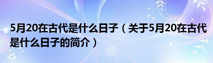 本文關于5月20在古代是什么日子的簡介就講解完畢,希望對大家有所幫助。