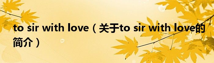 本文關于to sir with love的簡介就講解完畢,希望對大家有所幫助。