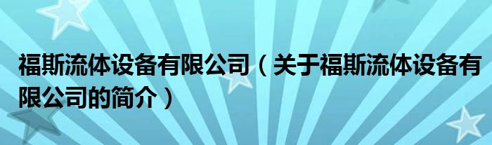 本文關于福斯流體設備有限公司的簡介就講解完畢,希望對大家有所幫助。