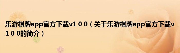 本文關(guān)于樂(lè)游棋牌app官方下載v1 0 0的簡(jiǎn)介就講解完畢,希望對(duì)大家有所幫助。