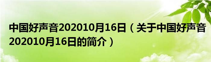 大家好,中國好聲音202010月16日,關于中國好聲音202010月16日的簡介很多人還不知道,現在讓我們一起來看看吧!