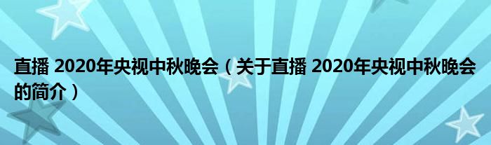本文關于直播 2020年央視中秋晚會的簡介就講解完畢,希望對大家有所幫助。