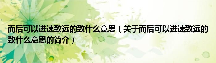 本文關(guān)于而后可以進(jìn)速致遠(yuǎn)的致什么意思的簡(jiǎn)介就講解完畢,希望對(duì)大家有所幫助。