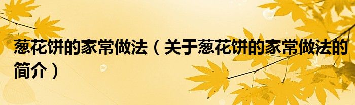 本文關于蔥花餅的家常做法的簡介就講解完畢,希望對大家有所幫助。