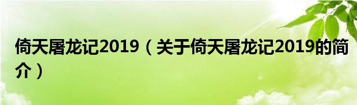 本文關(guān)于倚天屠龍記2019的簡(jiǎn)介就講解完畢,希望對(duì)大家有所幫助。