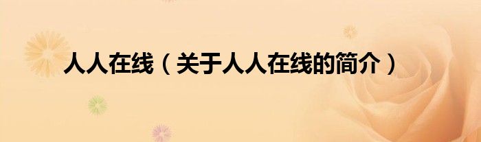 大家好,人人在線,關于人人在線的簡介很多人還不知道,現在讓我們一起來看看吧!