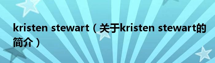 大家好,kristen stewart,關(guān)于kristen stewart的簡(jiǎn)介很多人還不知道,現(xiàn)在讓我們一起來(lái)看看吧!