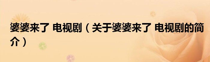 本文關于婆婆來了 電視劇的簡介就講解完畢,希望對大家有所幫助。