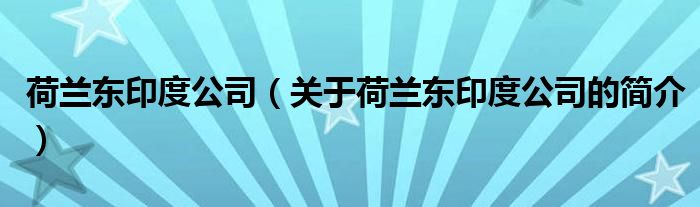 本文關(guān)于荷蘭東印度公司的簡介就講解完畢,希望對(duì)大家有所幫助。