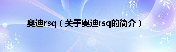 大家好,奧迪rsq,關于奧迪rsq的簡介很多人還不知道,現在讓我們一起來看看吧!