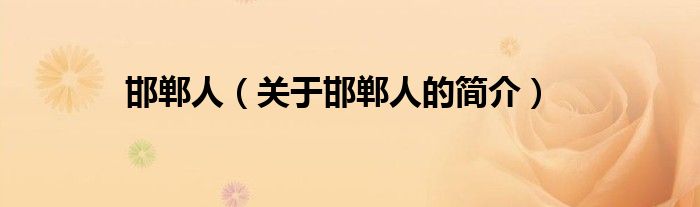 大家好,邯鄲人,關于邯鄲人的簡介很多人還不知道,現在讓我們一起來看看吧!