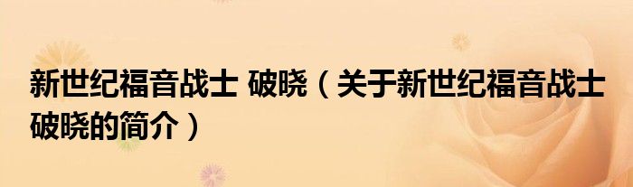 大家好,新世紀(jì)福音戰(zhàn)士 破曉,關(guān)于新世紀(jì)福音戰(zhàn)士 破曉的簡介很多人還不知道,現(xiàn)在讓我們一起來看看吧!
