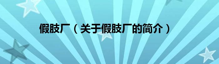 本文關于假肢廠的簡介就講解完畢,希望對大家有所幫助。