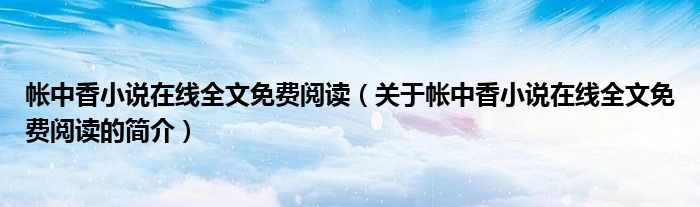 本文關(guān)于帳中香小說在線全文免費(fèi)閱讀的簡(jiǎn)介就講解完畢,希望對(duì)大家有所幫助。