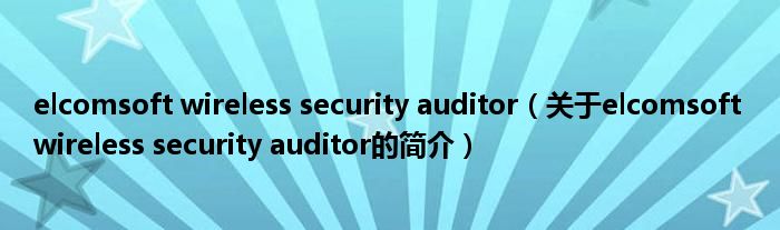 本文關于elcomsoft wireless security auditor的簡介就講解完畢,希望對大家有所幫助。