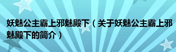 大家好,妖魅公主霸上邪魅殿下,關(guān)于妖魅公主霸上邪魅殿下的簡介很多人還不知道,現(xiàn)在讓我們一起來看看吧!