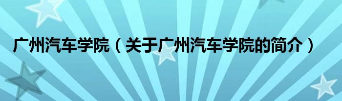 本文關于廣州汽車學院的簡介就講解完畢,希望對大家有所幫助。