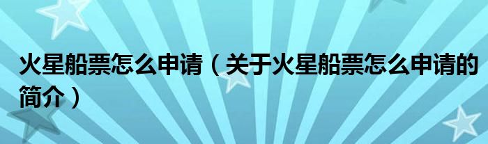 本文關于火星船票怎么申請的簡介就講解完畢,希望對大家有所幫助。