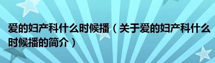 本文關于愛的婦產科什么時候播的簡介就講解完畢,希望對大家有所幫助。