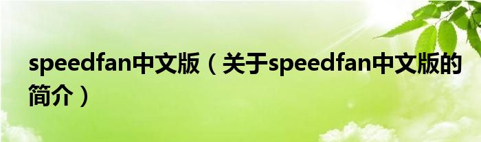 本文關于speedfan中文版的簡介就講解完畢,希望對大家有所幫助。