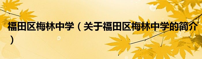 大家好,福田區(qū)梅林中學,關于福田區(qū)梅林中學的簡介很多人還不知道,現(xiàn)在讓我們一起來看看吧!