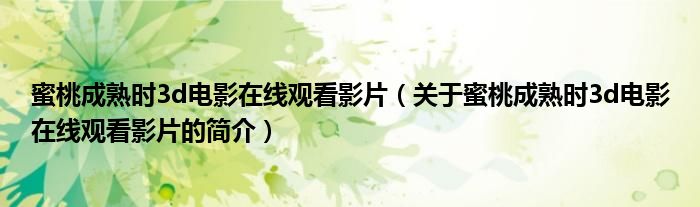 本文關(guān)于蜜桃成熟時3d電影在線觀看影片的簡介就講解完畢,希望對大家有所幫助。