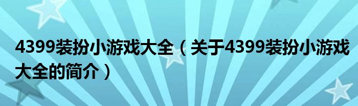 本文關于4399裝扮小游戲大全的簡介就講解完畢,希望對大家有所幫助。