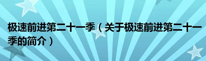 本文關于極速前進第二十一季的簡介就講解完畢,希望對大家有所幫助。