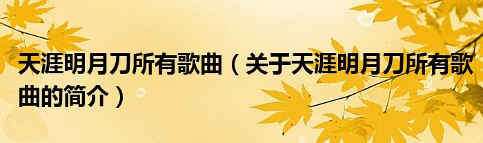 本文關于天涯明月刀所有歌曲的簡介就講解完畢,希望對大家有所幫助。