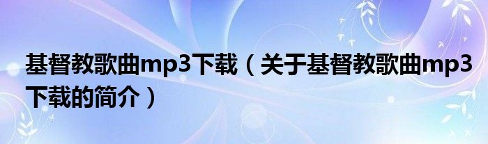 本文關于基督教歌曲mp3下載的簡介就講解完畢,希望對大家有所幫助。