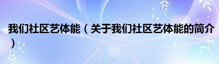 本文關(guān)于我們社區(qū)藝體能的簡介就講解完畢,希望對大家有所幫助。