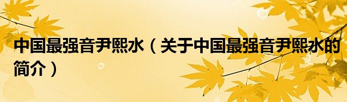 本文關(guān)于中國(guó)最強(qiáng)音尹熙水的簡(jiǎn)介就講解完畢,希望對(duì)大家有所幫助。