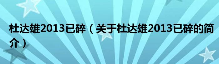 本文關(guān)于杜達(dá)雄2013已碎的簡介就講解完畢,希望對大家有所幫助。