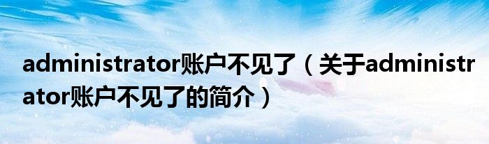 大家好,administrator賬戶不見了,關(guān)于administrator賬戶不見了的簡介很多人還不知道,現(xiàn)在讓我們一起來看看吧!