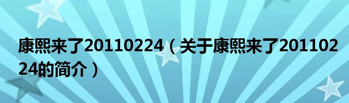 大家好,康熙來了20110224,關(guān)于康熙來了20110224的簡介很多人還不知道,現(xiàn)在讓我們一起來看看吧!