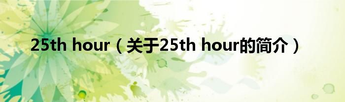本文關于25th hour的簡介就講解完畢,希望對大家有所幫助。