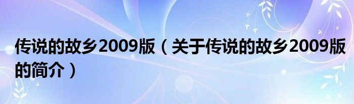 本文關于傳說的故鄉2009版的簡介就講解完畢,希望對大家有所幫助。