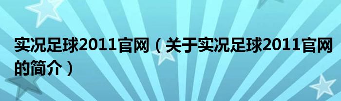大家好,實況足球2011官網,關于實況足球2011官網的簡介很多人還不知道,現在讓我們一起來看看吧!