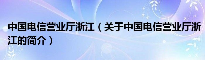 本文關于中國電信營業廳浙江的簡介就講解完畢,希望對大家有所幫助。