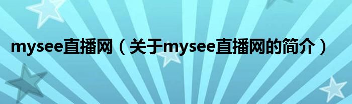 本文關于mysee直播網(wǎng)的簡介就講解完畢,希望對大家有所幫助。