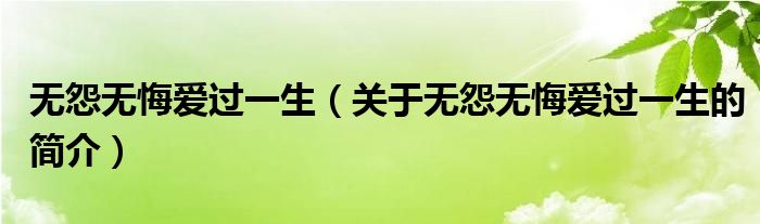 本文關于無怨無悔愛過一生的簡介就講解完畢,希望對大家有所幫助。