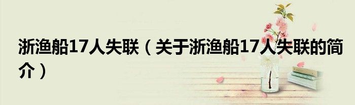 本文關于浙漁船17人失聯的簡介就講解完畢,希望對大家有所幫助。