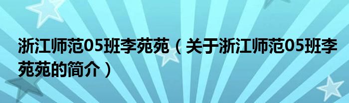 本文關于浙江師范05班李苑苑的簡介就講解完畢,希望對大家有所幫助。